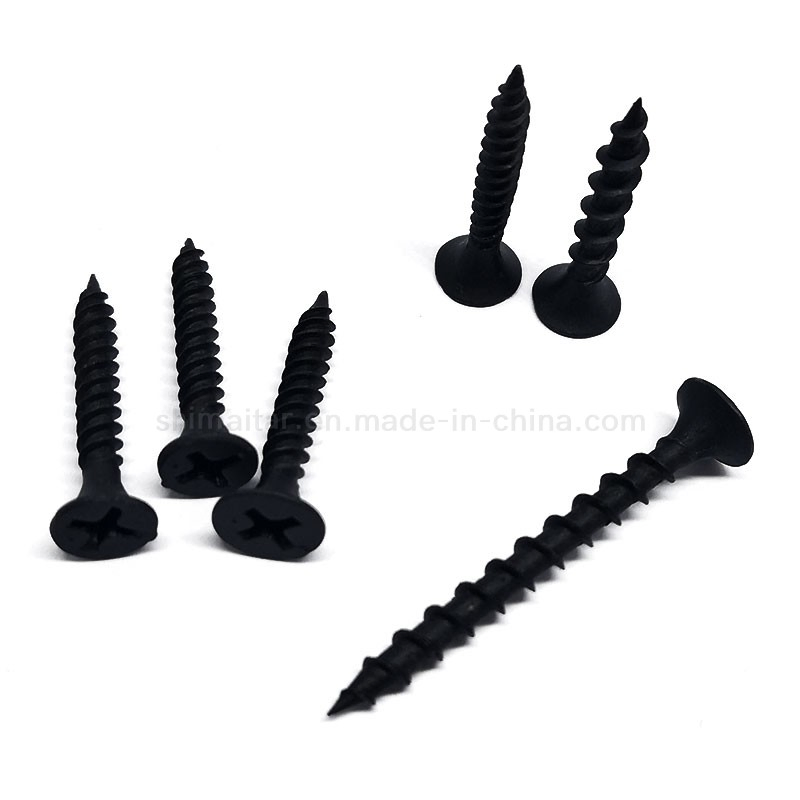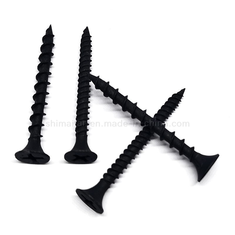 Product Description :Phillips Bugle Head ( 3/4" - 6" ) phosphate Black Coarse Drywall / Wood ScrewsMaterialCarbon steel 1022 hardened or stainless steelSizeAll size,M3.5X13-M4.8X200 / 6#x5/8~ 14#X3''SurfaceBlack/Grey Phosphate or Zinc Plated , Nick PlatedPointDrill point or sharp p......